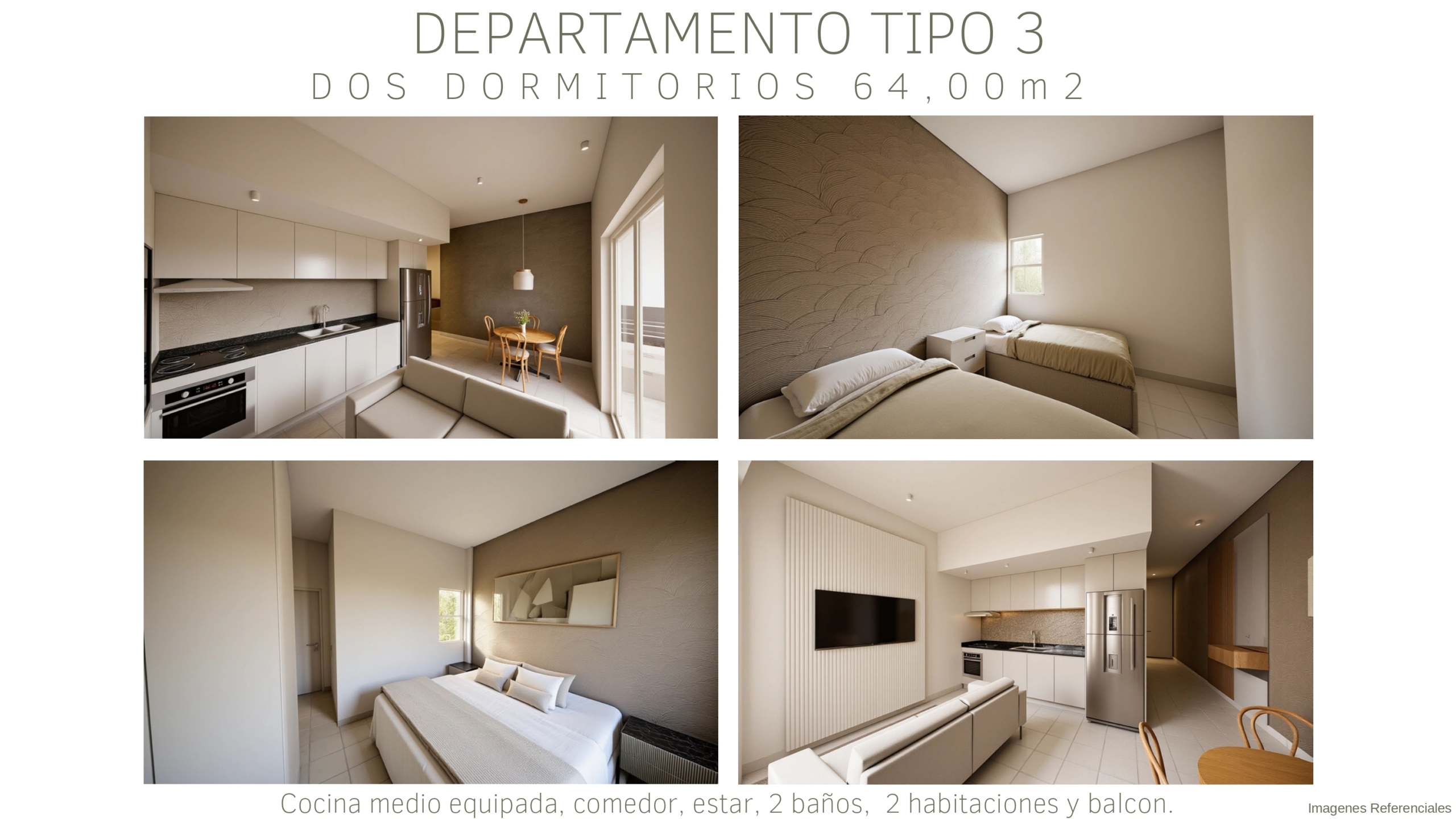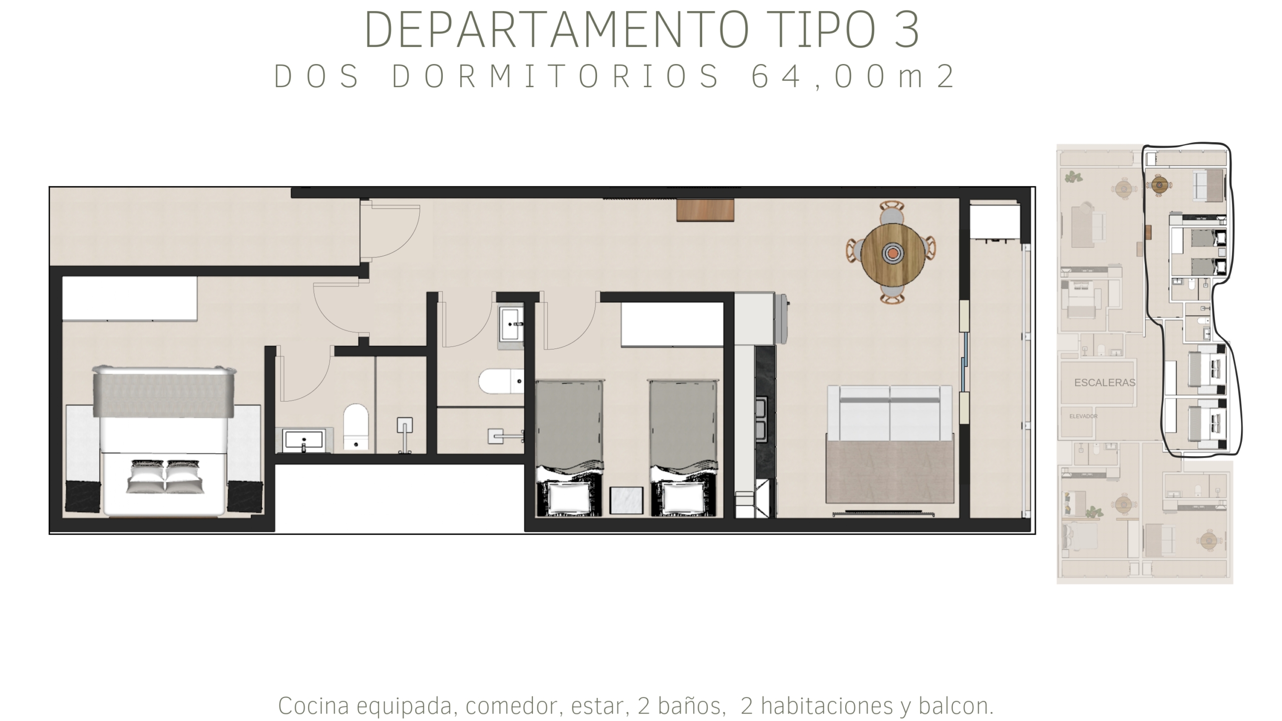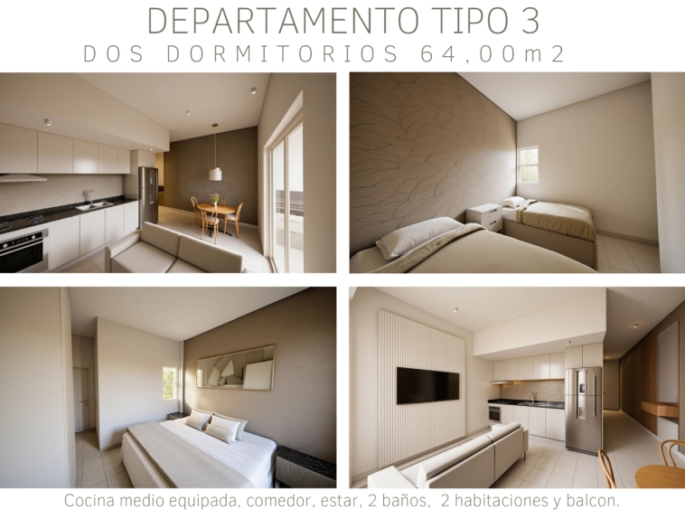 Tipología D: departamentos de 2 dormitorios de 60m²