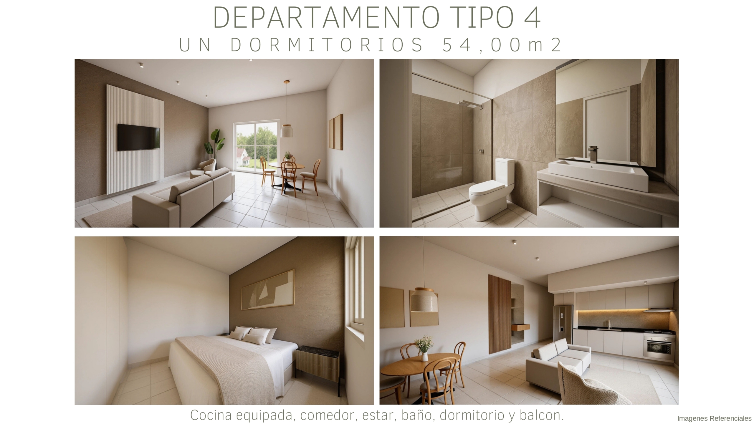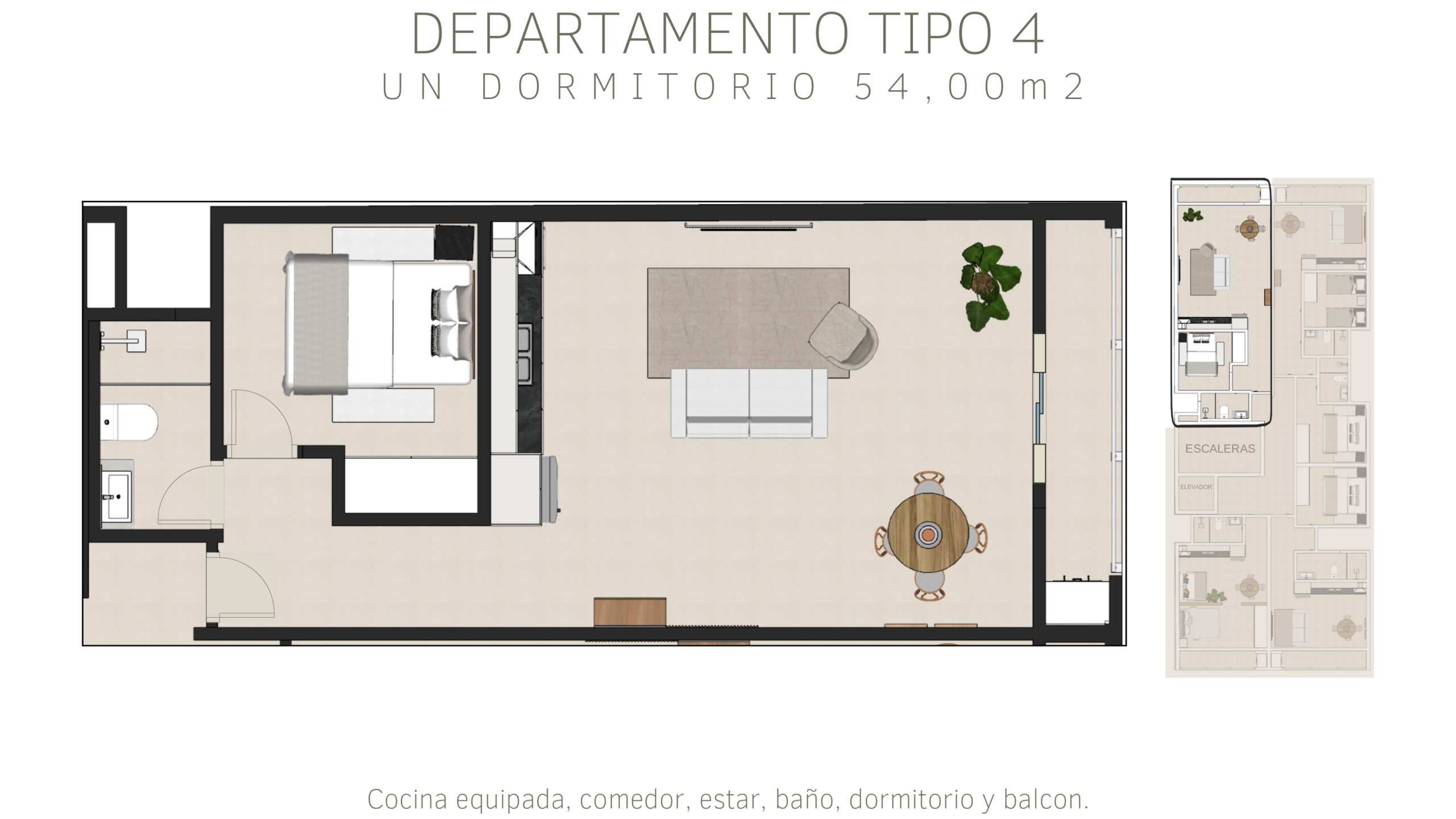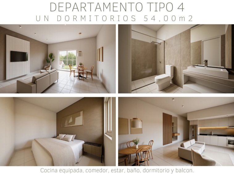 Tipología C: departamentos de 1 dormitorio de 54m²